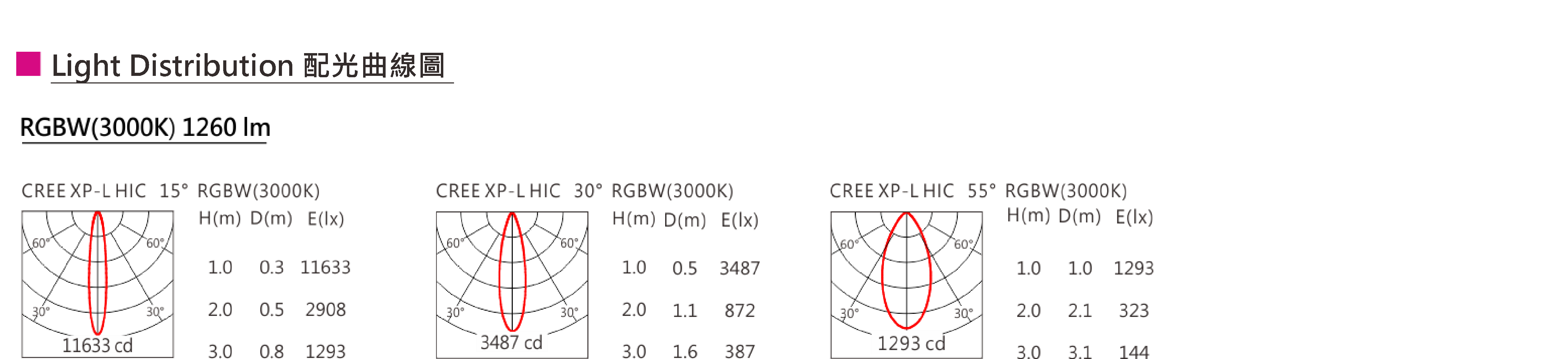 色溫(Color Temperature):2700K、3000K、3500K、4000K