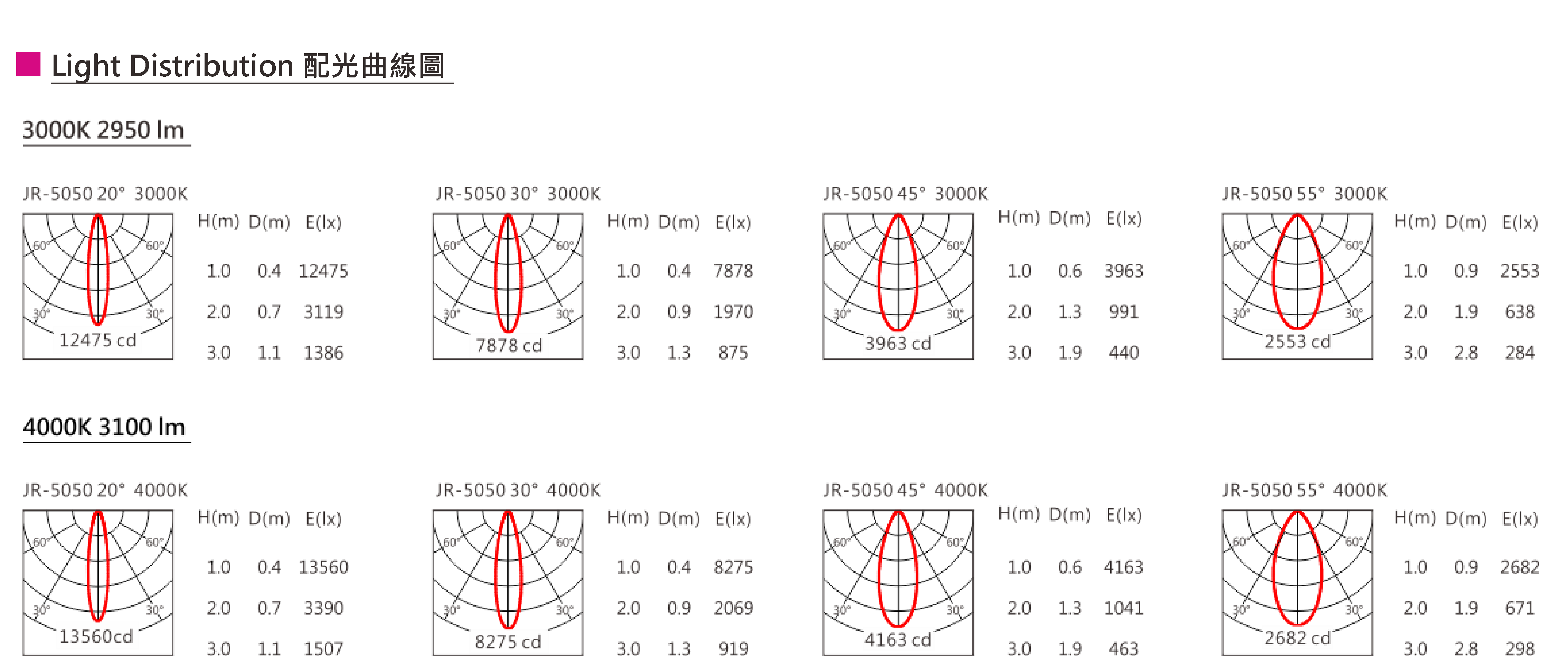 光束角(Beam Angle):12°/30°/55°