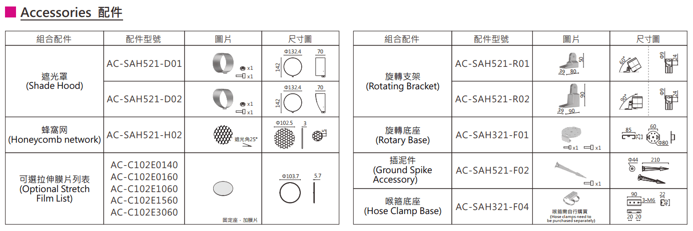 光形左右對稱,采⽤了三次配光設計,多種投射⾓度及光學配件可供選