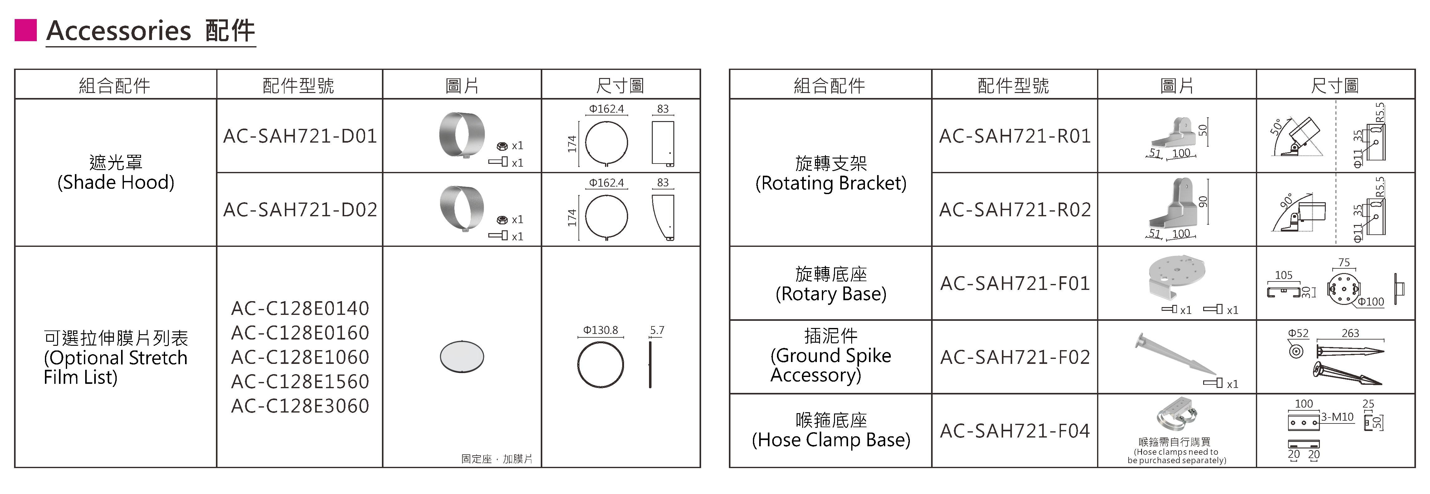 光形左右對稱,采⽤了三次配光設計,多種投射⾓度及光學配件可供選