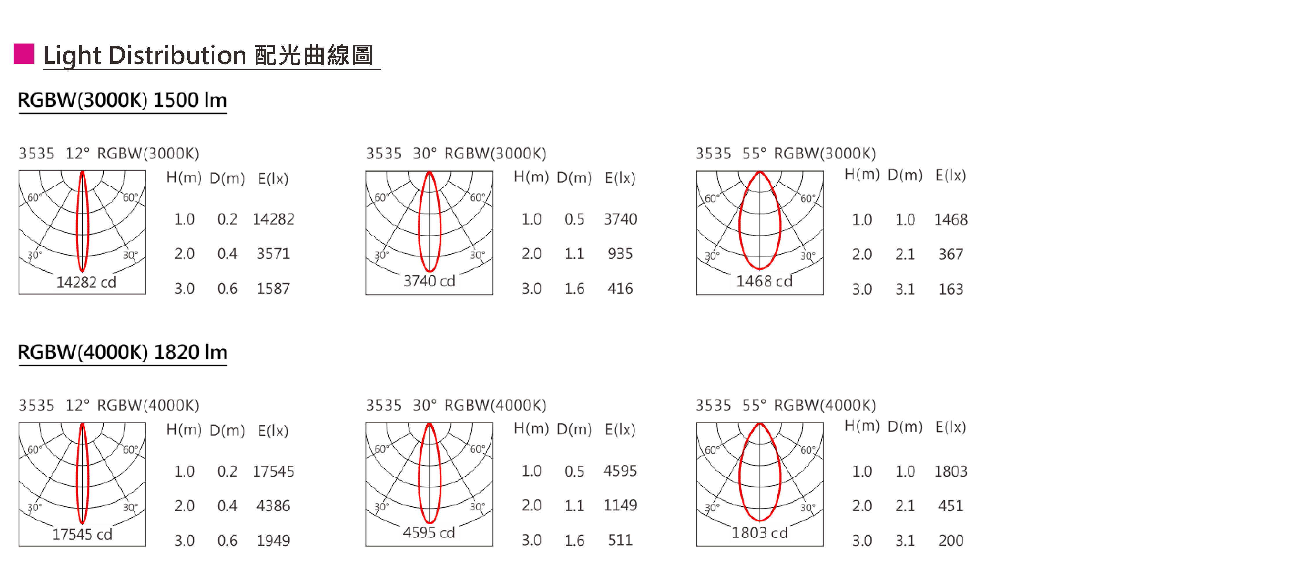光束角(Beam Angle):12°/30°/55°