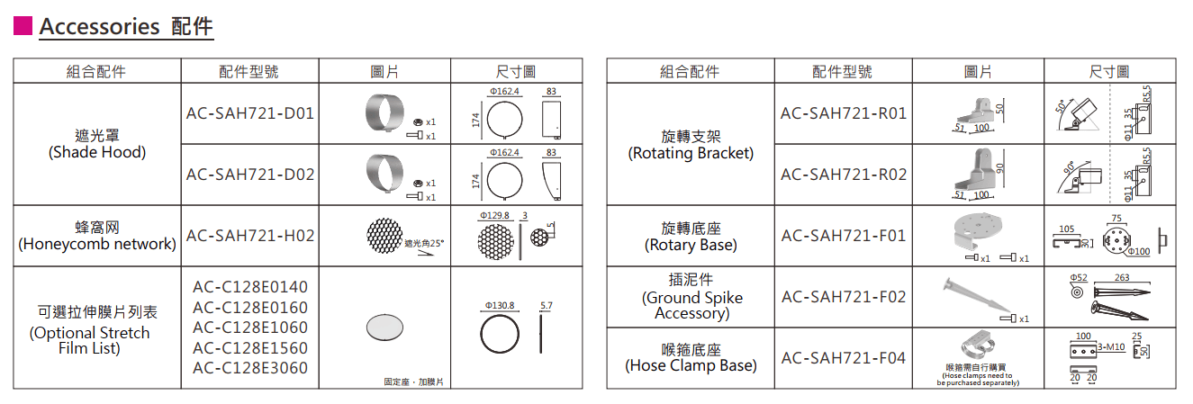光形左右對稱,采⽤了三次配光設計,多種投射⾓度及光學配件可供選