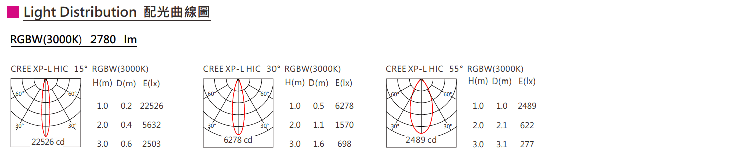 光束角(Beam Angle):15°/30°/55°