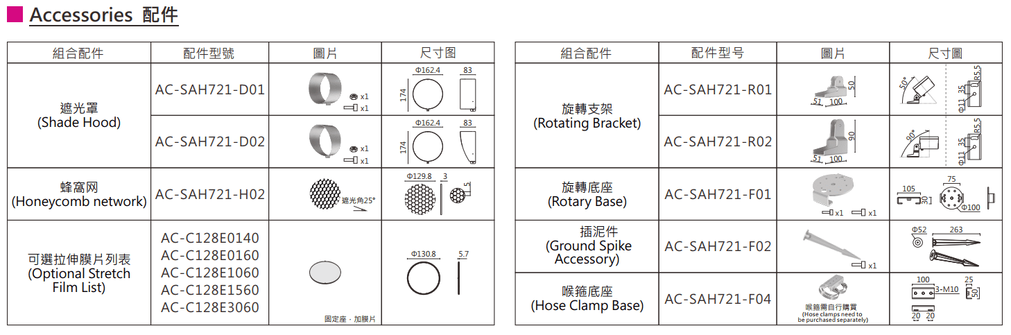 光形左右對稱,采⽤了三次配光設計,多種投射⾓度及光學配件可供選