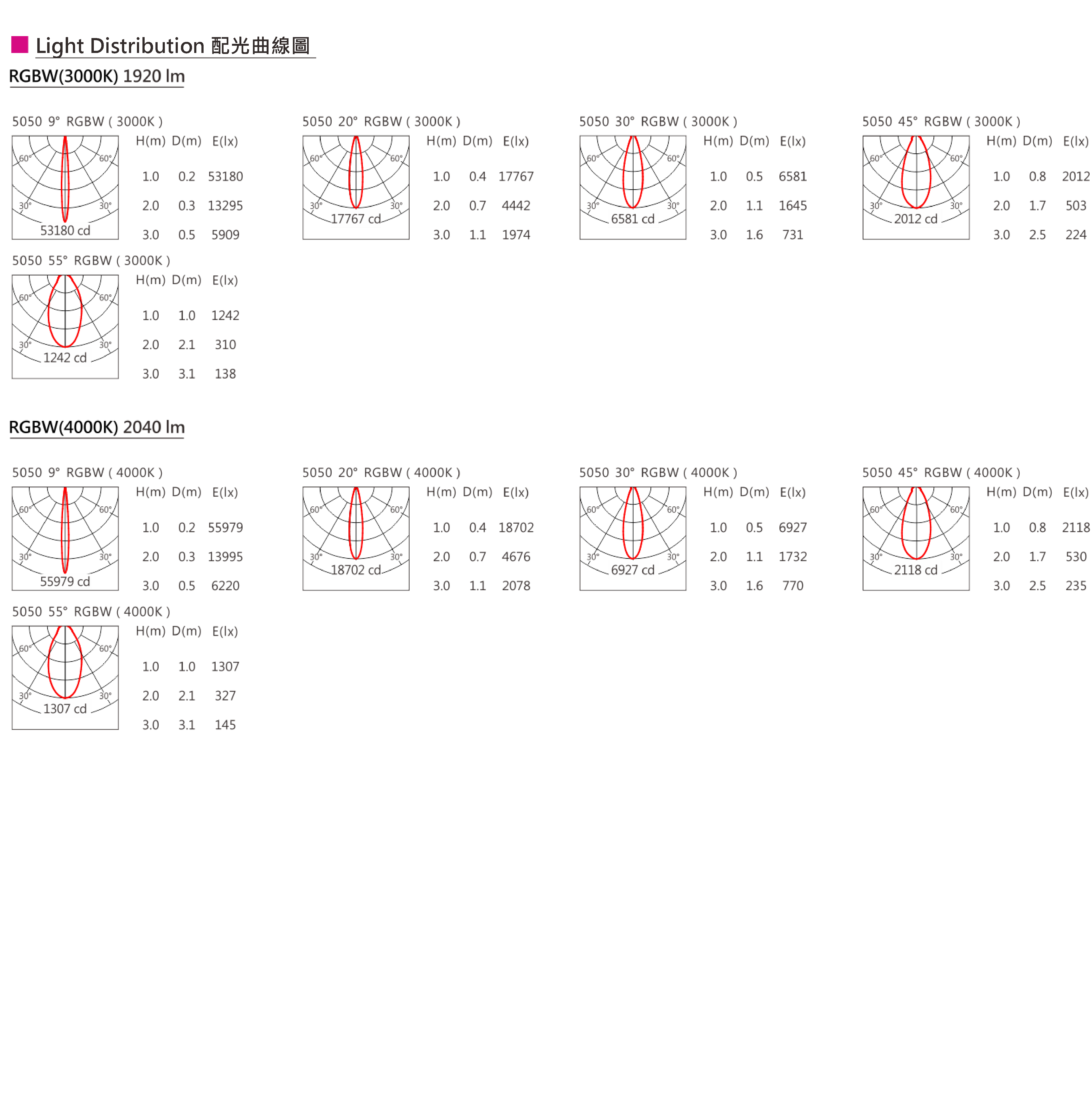 色溫(Color Temperature):RGBW(3000K、4000K)