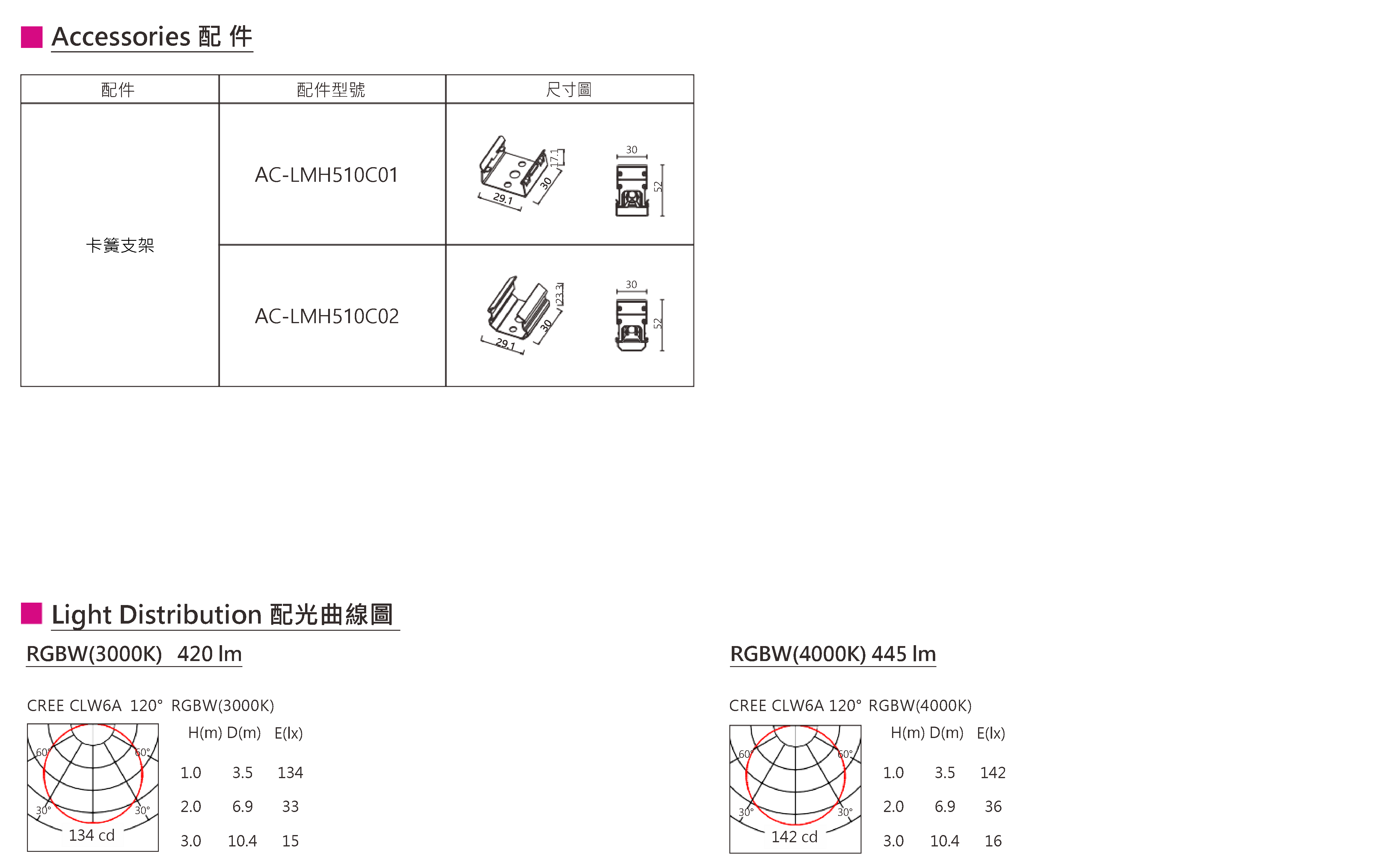 • 色溫(Color Temperature):2200K、2700K、3000K、3500K、4000K、5000K、5700K、6500K