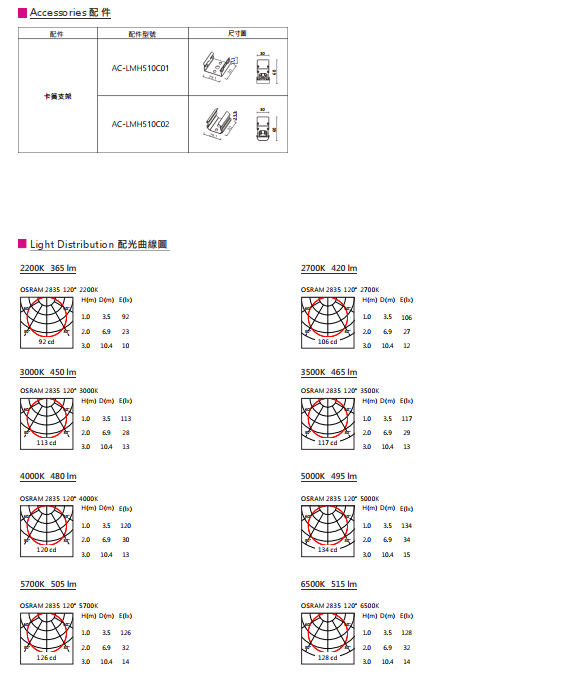 • 色溫(Color Temperature):2200K、2700K、3000K、3500K、4000K、5000K、5700K、6500K