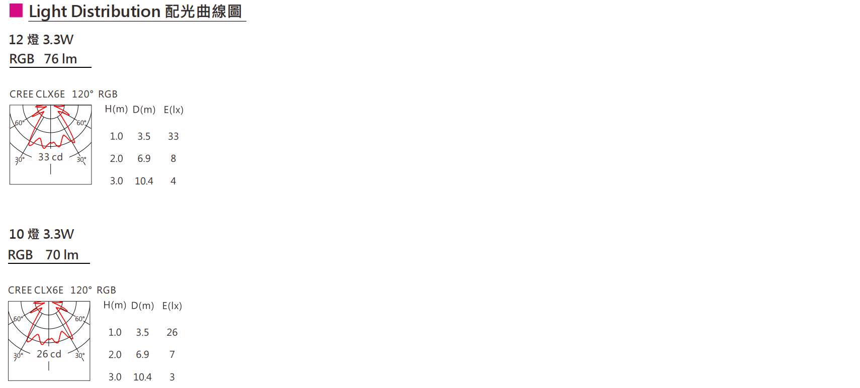 • 光束⾓( Beam Angle): 120°