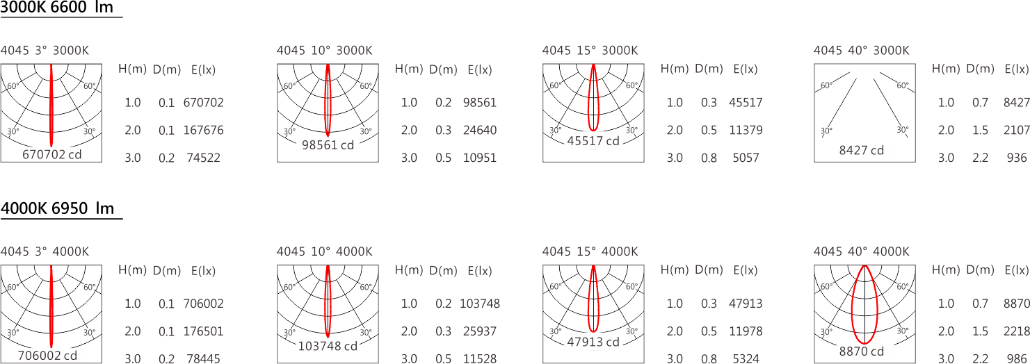光束角(Beam Angle):3°、10°、15°、40°