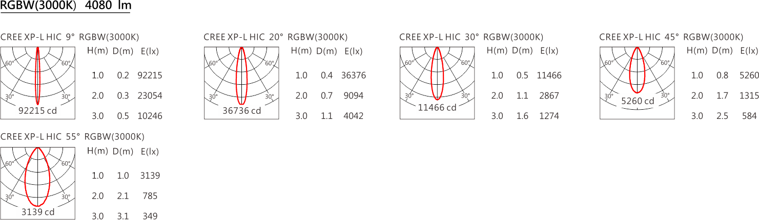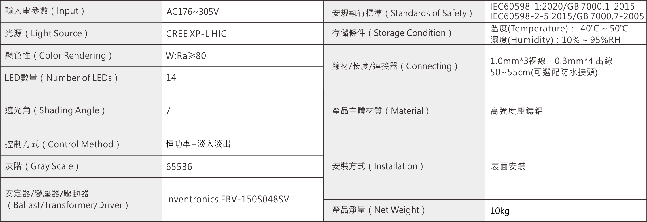 功率: 120W 電壓: AC176V~305V 光束角:9°、20°、30°、45°、55° IP:66 光色:RGBW 燈數:14