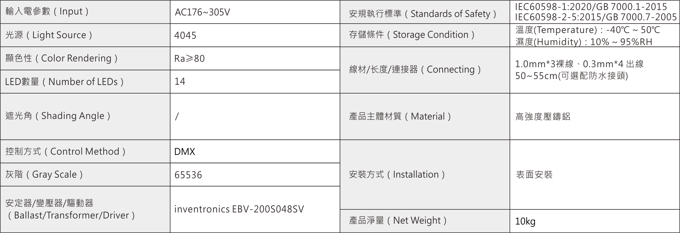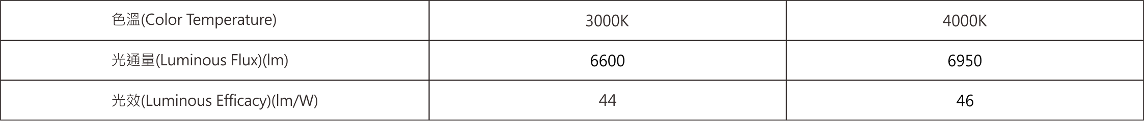 色溫(Color Temperature):3000K、4000K