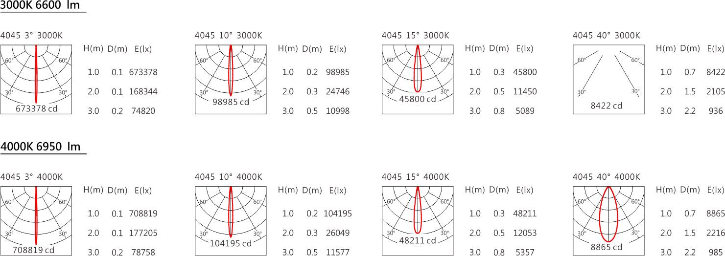 光束角(Beam Angle):3°、10°、15°、40°